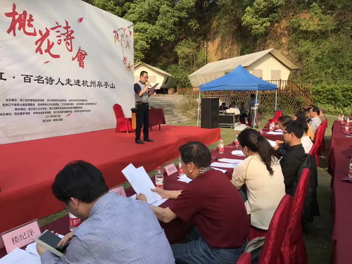 2 017年4月15日至16日,“诗意浙江·百名诗人走进杭州皋亭山”采风活动及桃花诗会在余杭临平举行,本次活动由省作协诗创委、省青年书法家协会、杭州市文联主办,浙江诗人平台等协办。徐加和、虞兵科等应邀参加了活动。